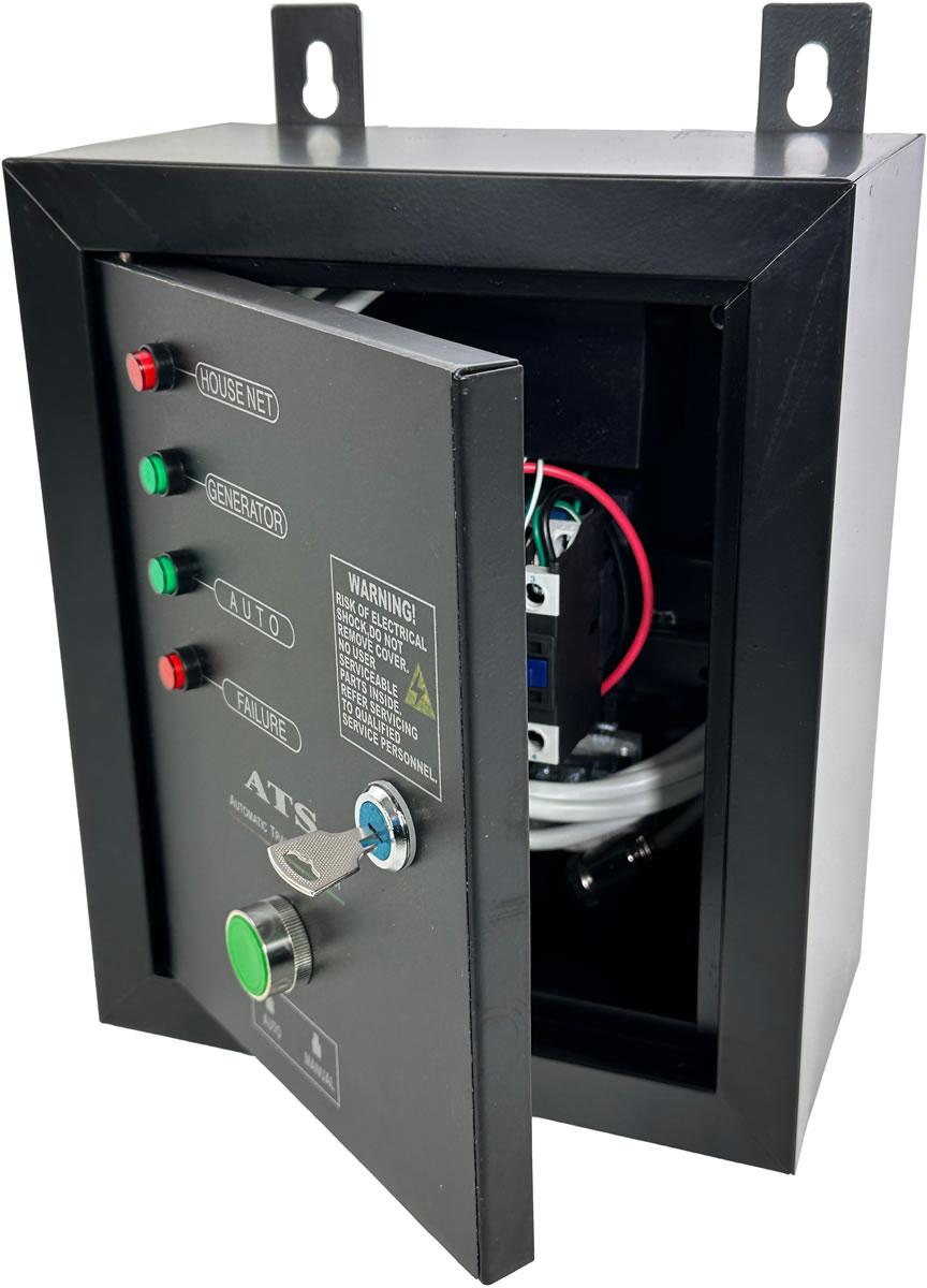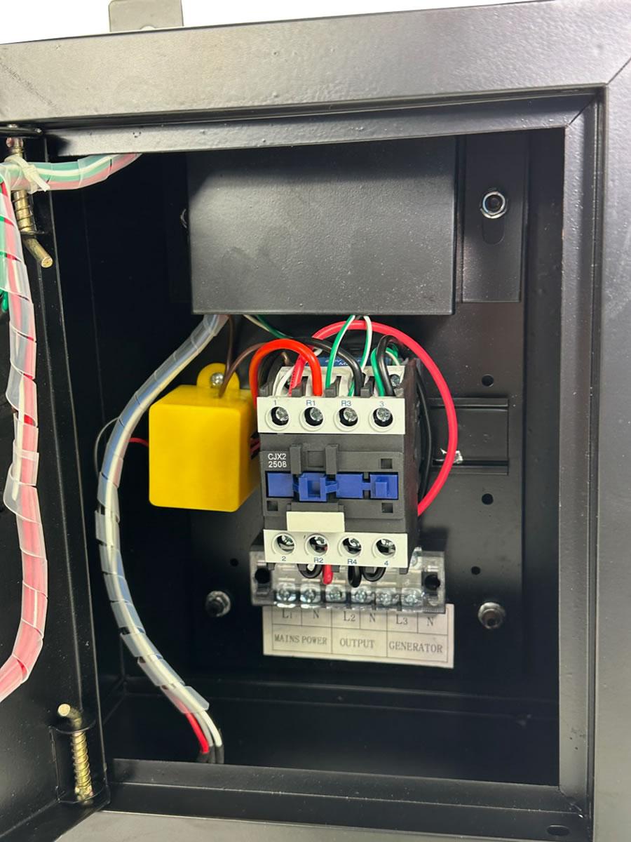 For use with the Miller & Mason G7000W-E electric start generator. In the event of a power cut the box will switch power to the generator and start it. Must be installed by a qualified electrician only.